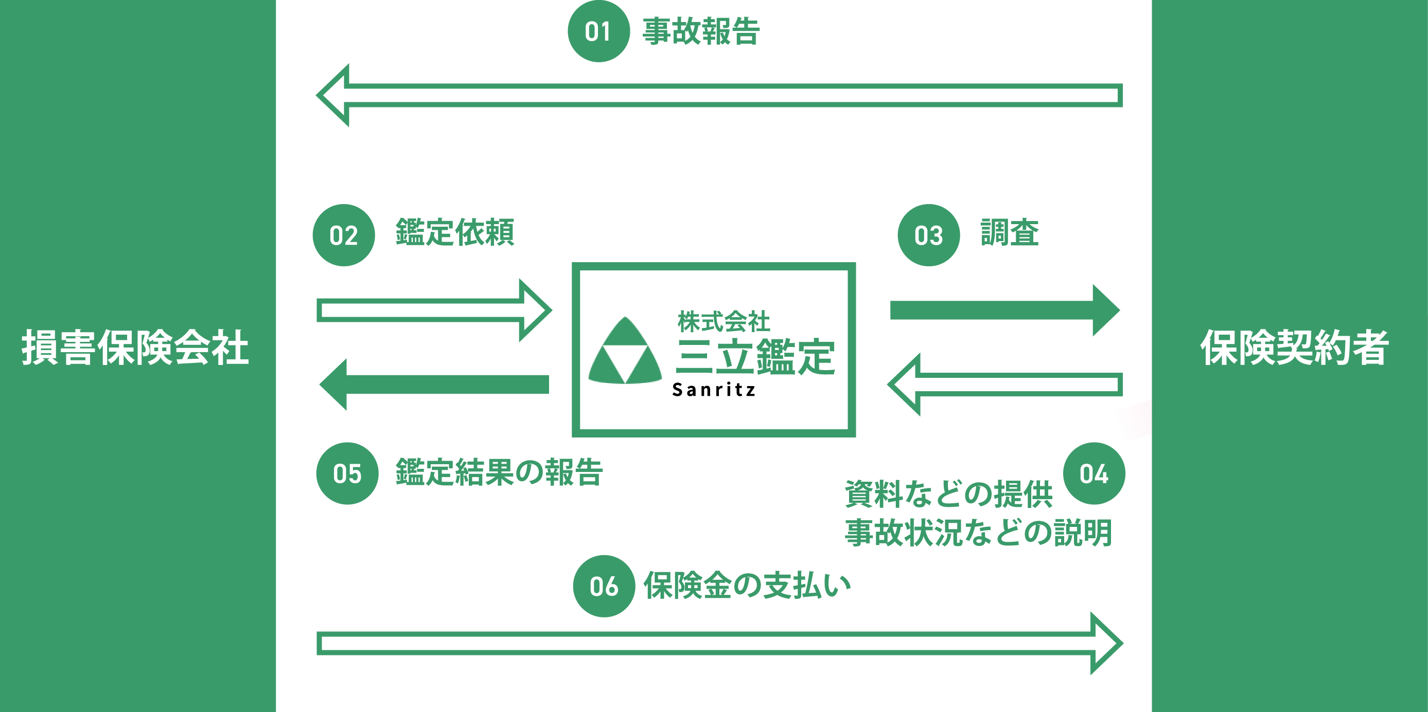 鑑定人の仕事は、正確な情報を保険会社へ繋ぐこと。 迅速かつ適正な保険金支払いを支えるための、最も重要なプロセスです。